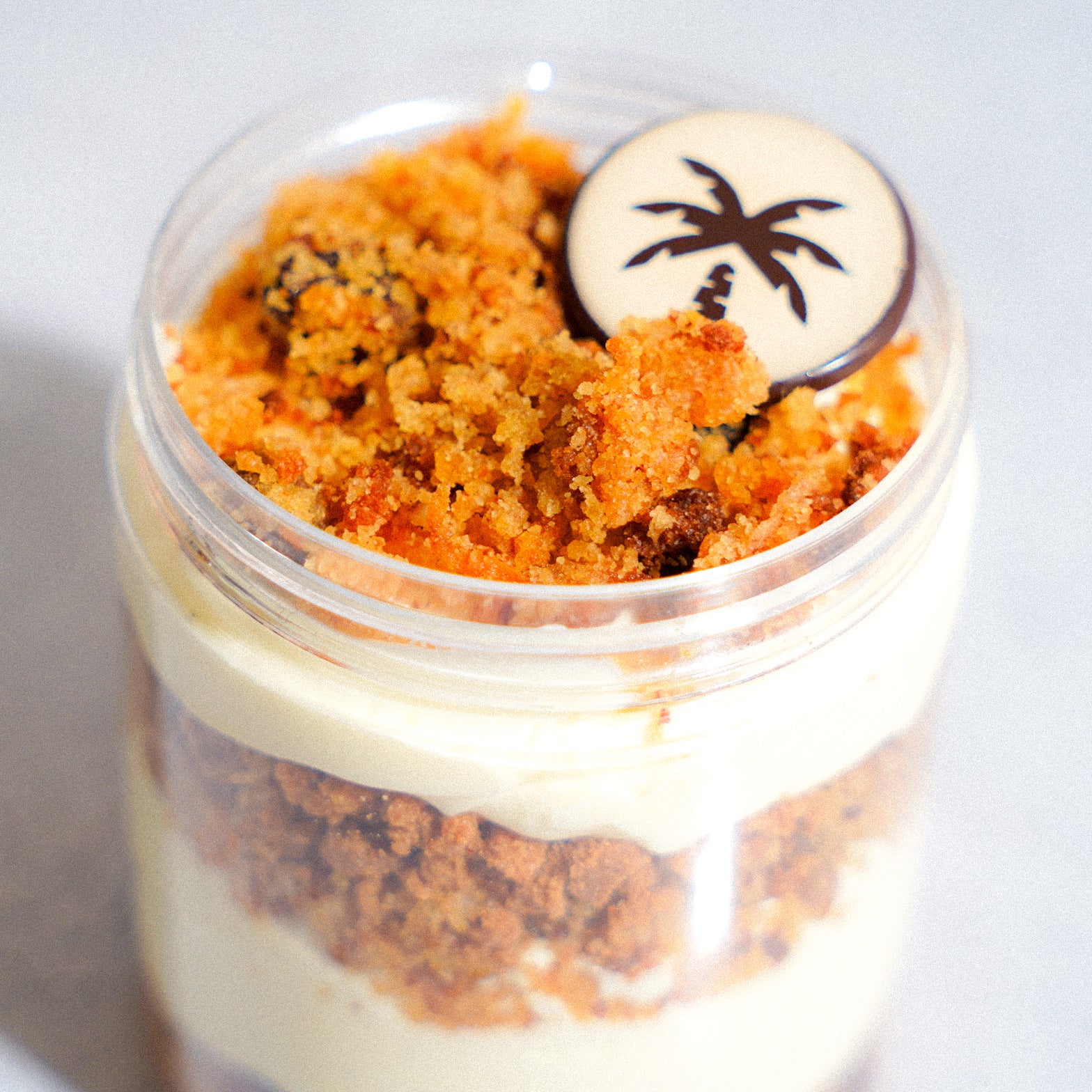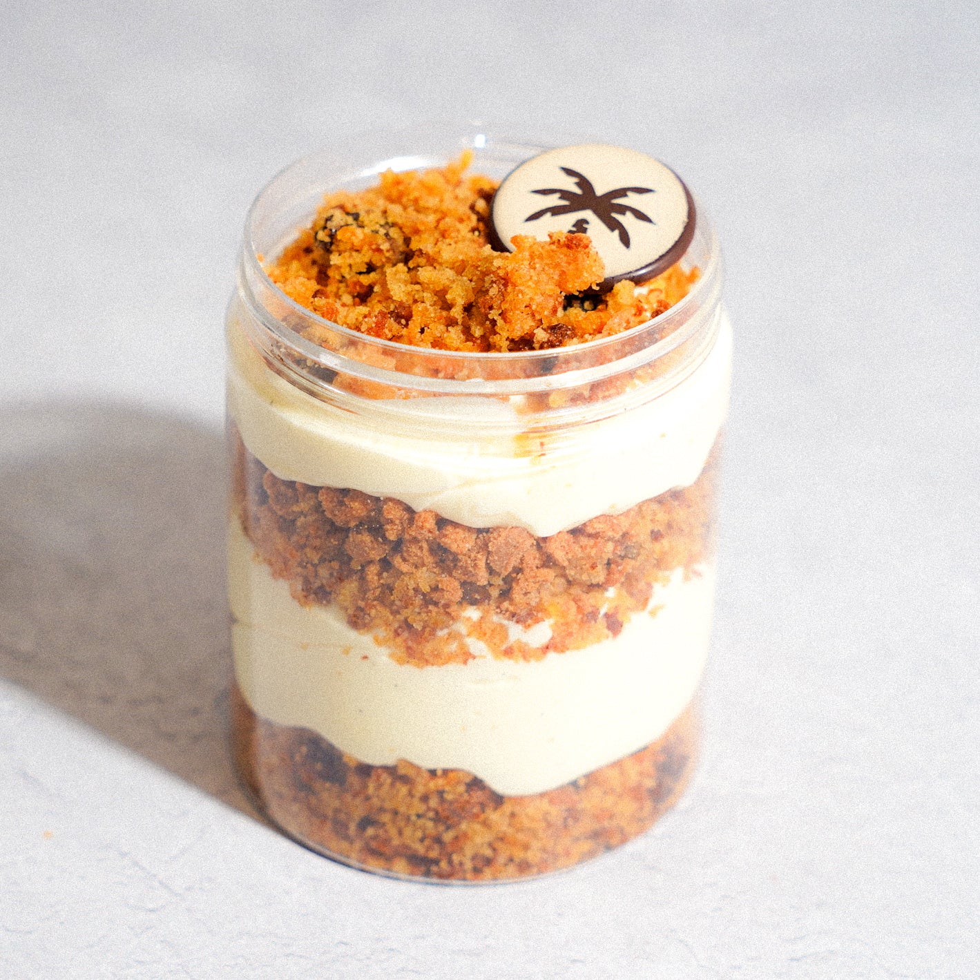 Spiced carrot crumble, silky cream cheese mousse, and golden raisin crumble—layered in an 8oz jar and sealed with our signature chocolate palm. A modern take on a nostalgic favorite, crafted for effortless gifting and elevated events.