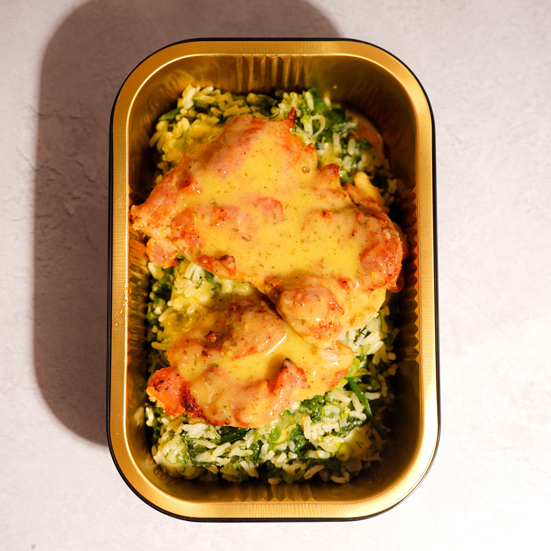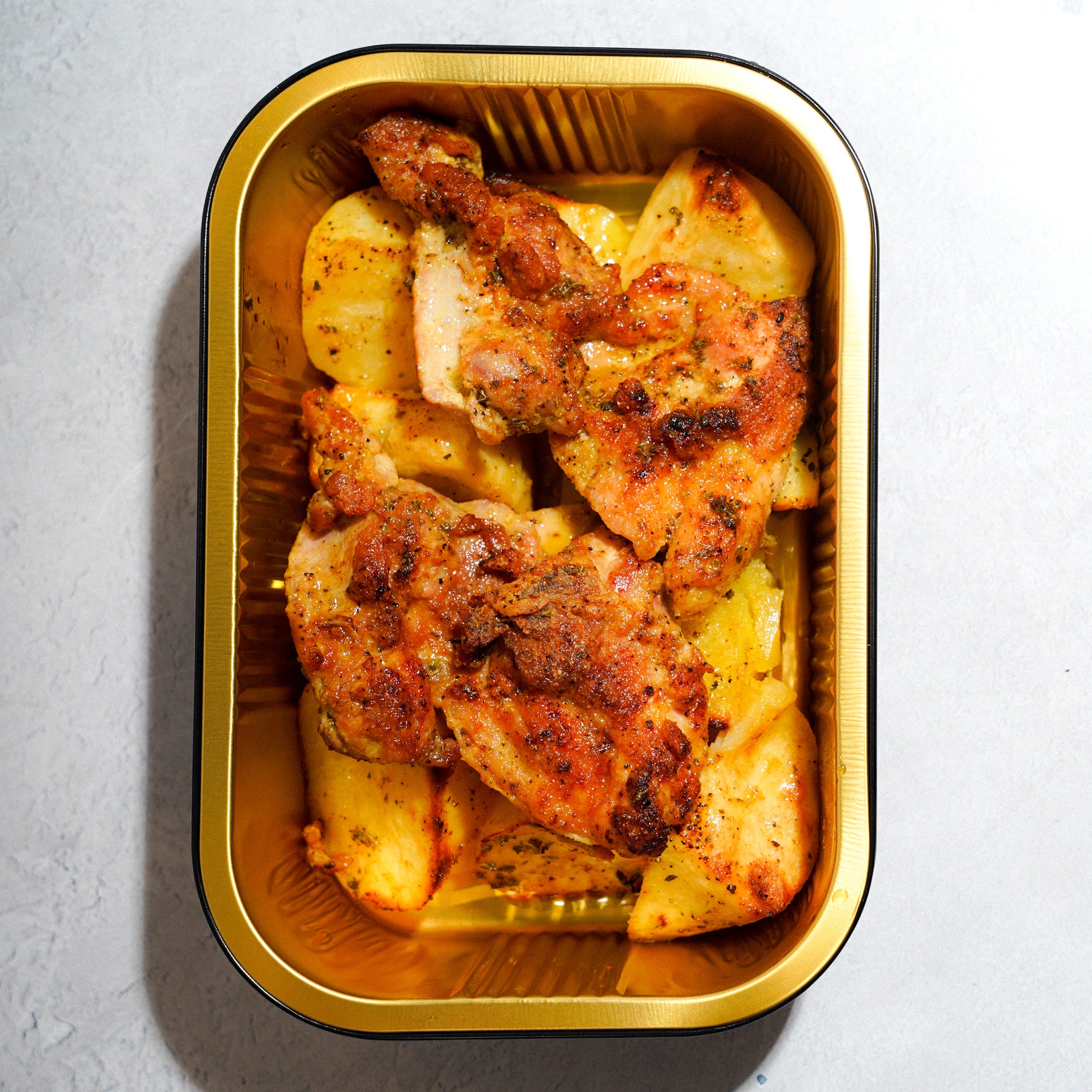 A timeless Mediterranean classic, perfectly portioned for individual enjoyment. This meal features tender, pasture-raised chicken marinated in fresh lemon juice, cold-pressed olive oil, garlic, and fragrant oregano, then roasted to golden perfection.