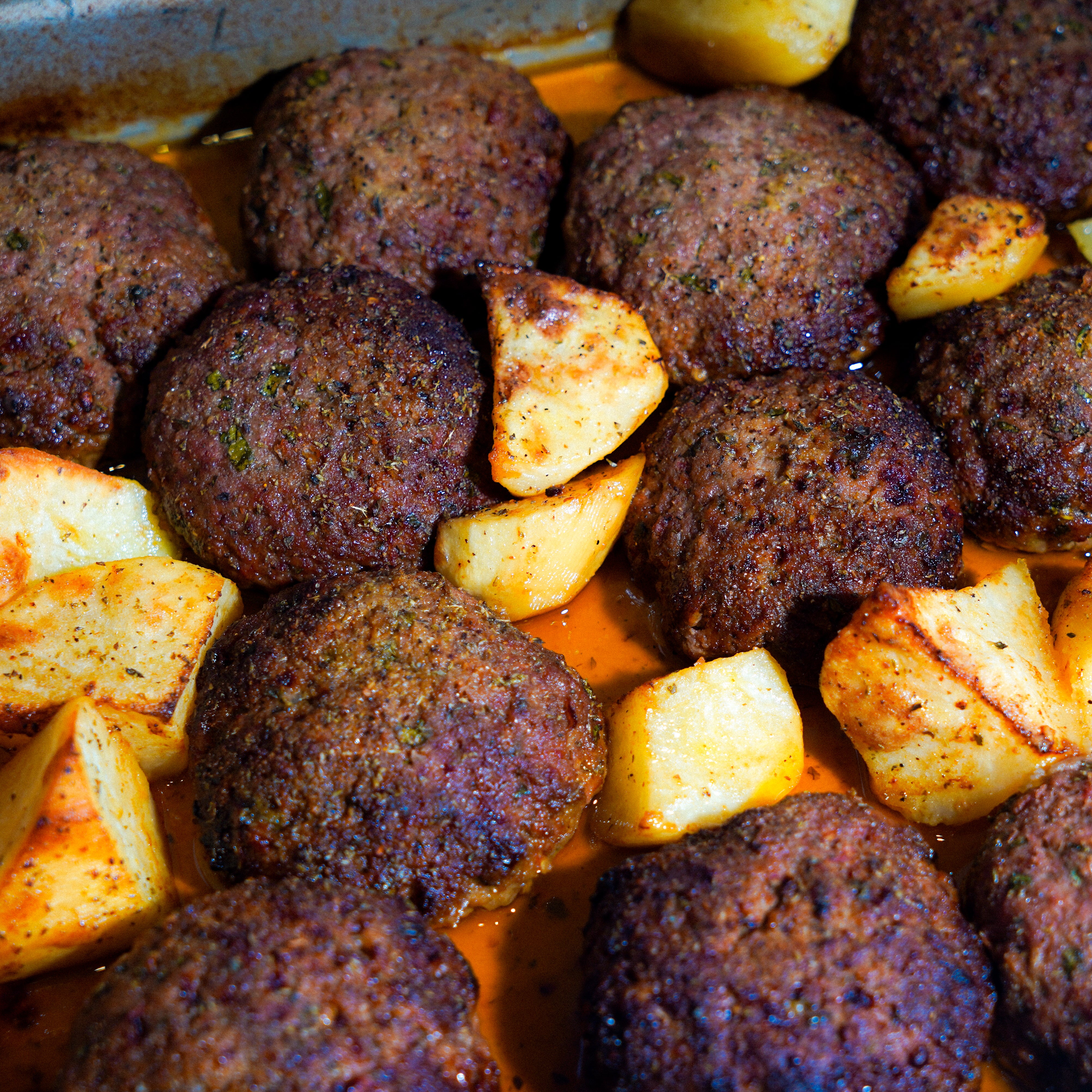 Elevate your meal with our handcrafted bifteki, made from premium grass-fed ground beef. Seasoned simply yet impeccably with fresh parsley, minced garlic, finely diced onion, and Mediterranean herbs, these patties are oven-baked to a tender, golden perfection.