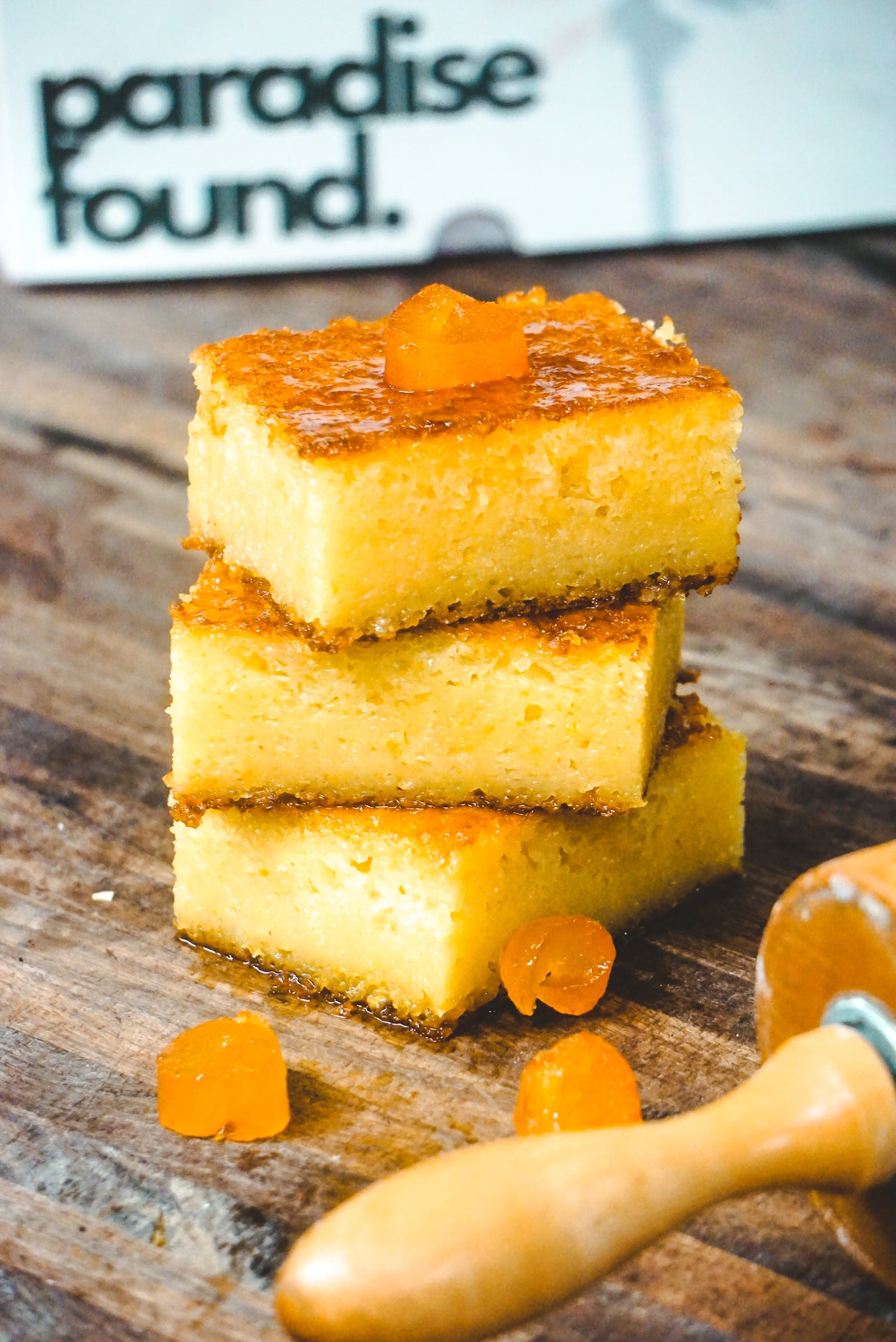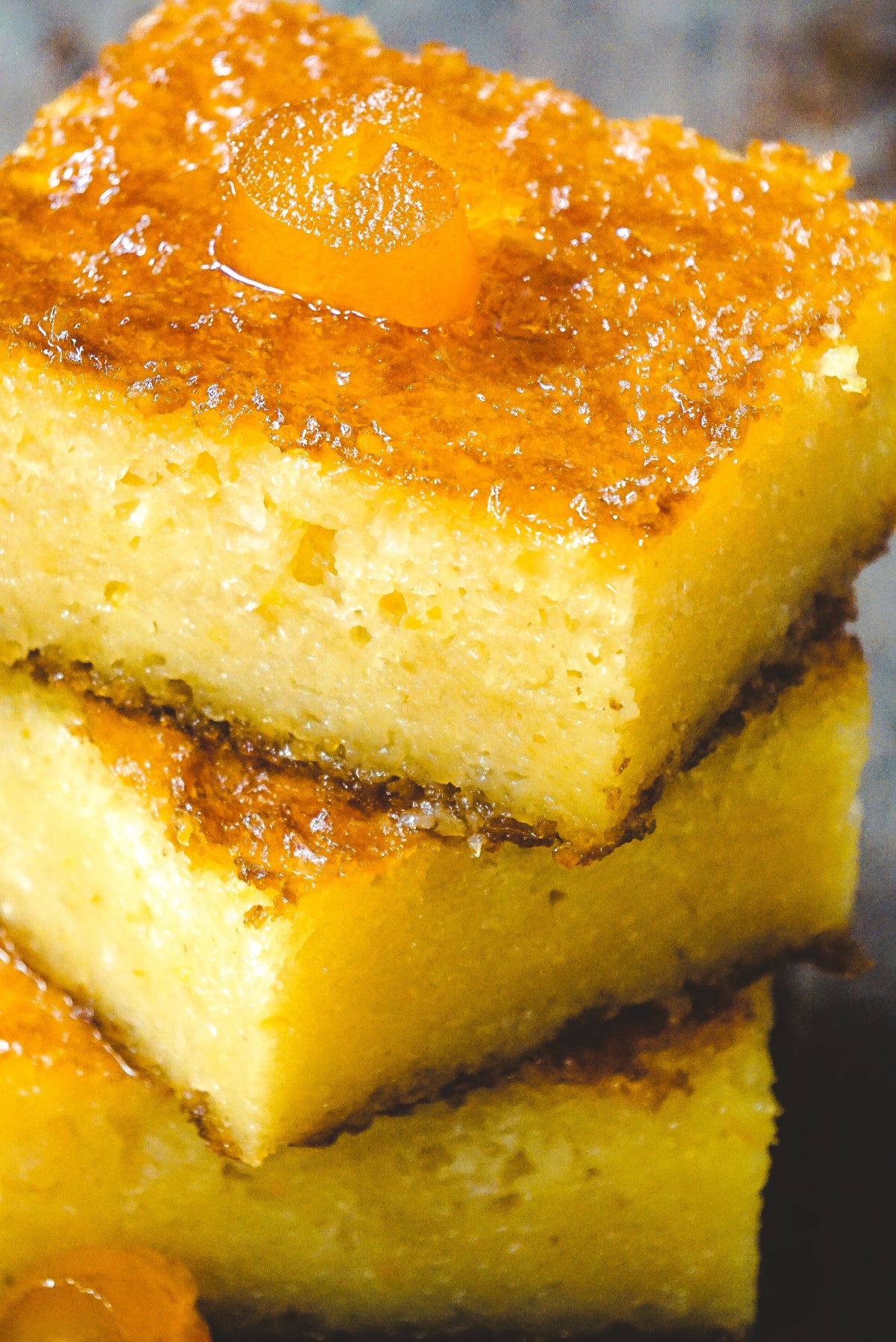 Deep-golden crust on top, custardy, with a thick texture this sweet citrusy concoction is bonkers good. Seriously, guys, you need to try this asap.