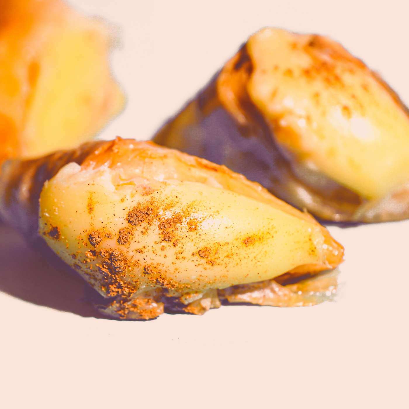 Crispy, golden, buttery phyllo triangles soaked in syrup and filled with the most rich & creamy custard.